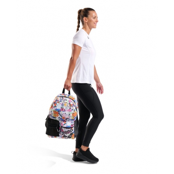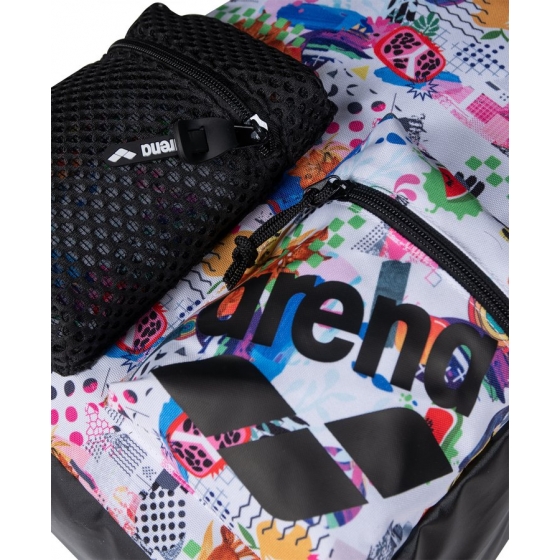 Универсальный и стильный компаньон для бассейна, спортзала или отдыха, практичный рюкзак Arena One Go Backpack Allover 30L облегчает упаковку и доступ к вашим вещам. Вместительное основное отделение и два внешних передних кармана на молнии позволяют хранить мокрые и сухие вещи отдельно. Водоотталкивающее дно и основная ткань защищают ваши вещи от влаги и грязи. Дополнительный боковой карман идеально подходит для хранения бутылки с водой. Размеры: 45 см x 31 см x 18 см.
