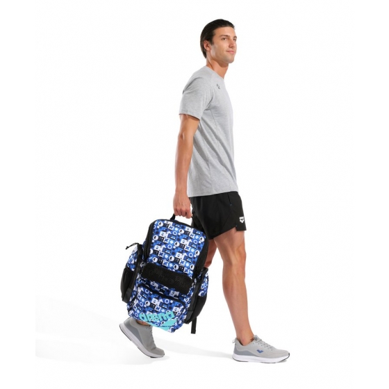 Организуйте все необходимое для тренировок. Большой и ультрастильный рюкзак Arena One Go Backpack Allover 45 л с верхней загрузкой позволяет легко упаковывать вещи и получать к ним доступ. Вместительное основное отделение и четыре внешних передних кармана на молнии обеспечивают множество вариантов хранения. Воздухопроницаемые и водонепроницаемые вставки позволяют хранить мокрые и сухие вещи отдельно. В комплект входят удобный чехол для ноутбука и два внешних кармана для бутылок. Aquabreathe (Аквадыхание), новая система управления влагой, сочетает воздухопроницаемые и водоотталкивающие ткани для создания усовершенствованной системы вентиляции, которая не допускает попадания воды и сохраняет ваше снаряжение сухим. Воздухопроницаемая задняя панель обеспечивает транспортировку без пота. Практичный ремень позволяет легко прикрепить рюкзак к чемодану, а входящий в комплект карабин позволяет удобно подвешивать рюкзак. Водоотталкивающее дно и основная ткань надежно защищают от влаги и грязи. Размеры: 50 см x 40 см x 25 см.