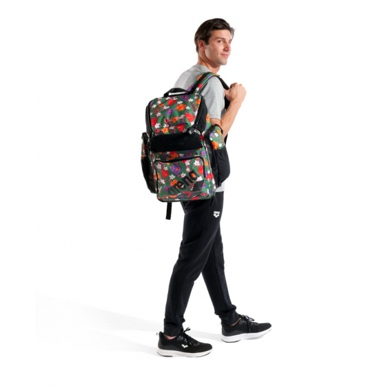 Организуйте все необходимое для тренировок. Большой и ультрастильный рюкзак Arena One Go Backpack Allover 45 л с верхней загрузкой позволяет легко упаковывать вещи и получать к ним доступ. Вместительное основное отделение и четыре внешних передних кармана на молнии обеспечивают множество вариантов хранения. Воздухопроницаемые и водонепроницаемые вставки позволяют хранить мокрые и сухие вещи отдельно. В комплект входят удобный чехол для ноутбука и два внешних кармана для бутылок. Aquabreathe, новая система управления влагой, сочетает воздухопроницаемые и водоотталкивающие ткани для создания усовершенствованной системы вентиляции, которая не допускает попадания воды и сохраняет ваше снаряжение сухим. Воздухопроницаемая задняя панель обеспечивает транспортировку без пота. Практичный ремень позволяет легко прикрепить рюкзак к чемодану, а входящий в комплект карабин позволяет удобно подвешивать рюкзак. Водоотталкивающее дно и основная ткань надежно защищают от влаги и грязи. Размеры: 50 см x 40 см x 25 см.